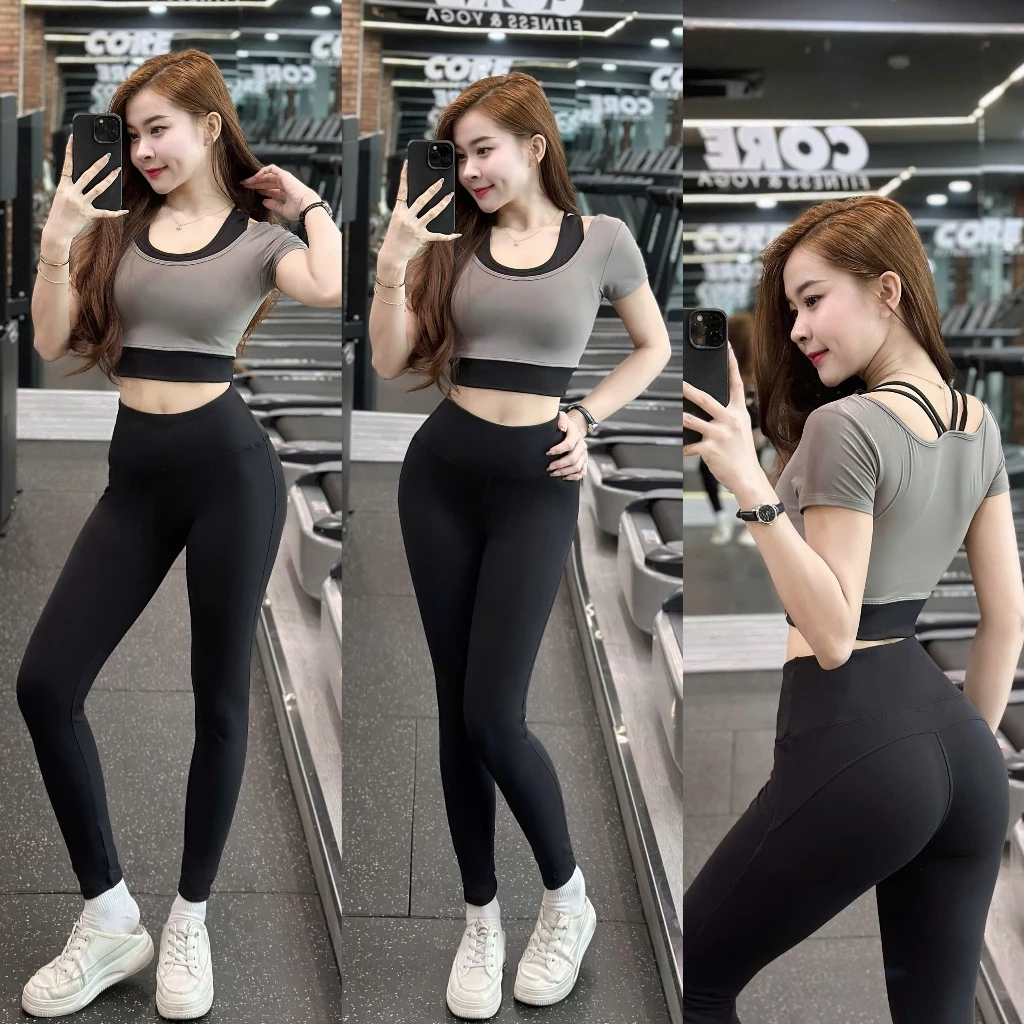 - Thiết kế quần dài và áo croptop ngắn tay: Thiết kế này sẽ giúp bạn thực hiện các động tác tập luyện một cách thoải mái và dễ dàng.
