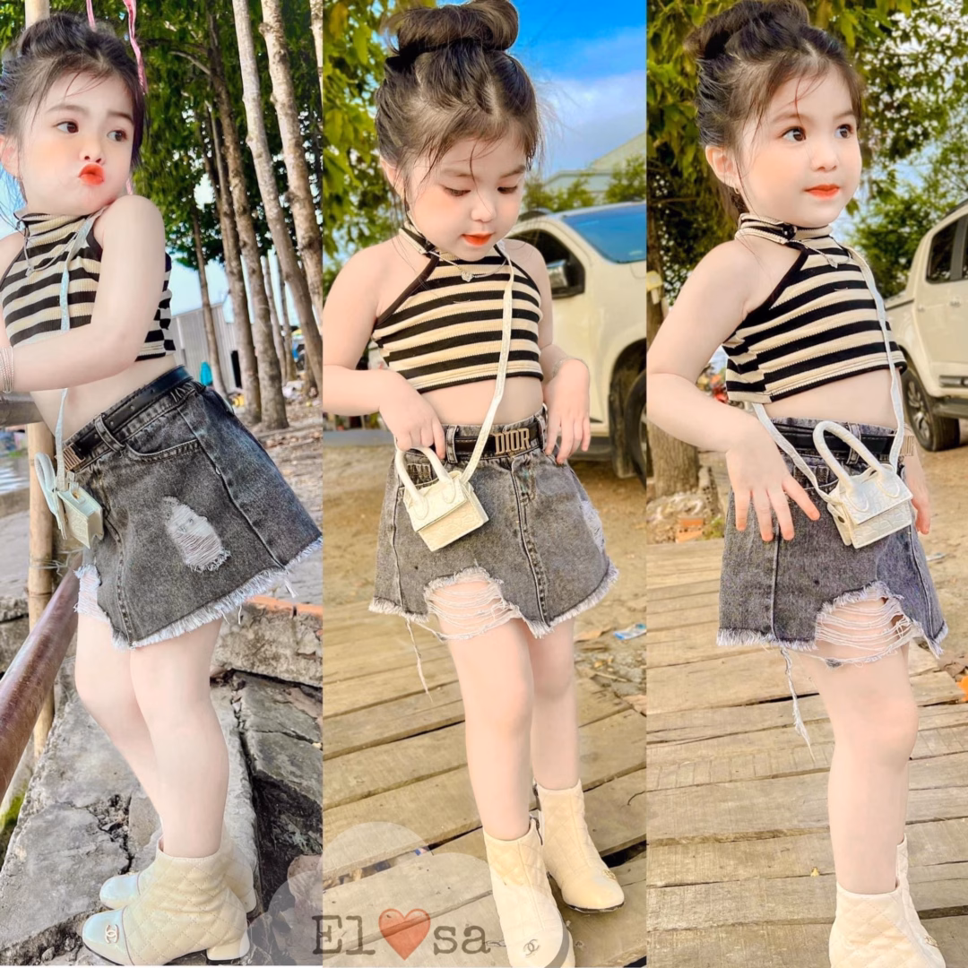 🔥 QUẦN ÁO BÉ GÁI– SET ÁO YẾM CLOPTOP CHÂN VÁY BÒ 8-30KG annakids đang giảm giá!