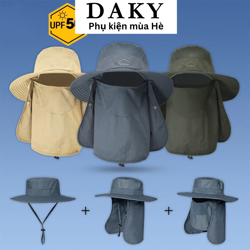 🔥 Mũ nón tai bèo chống nắng nam nữ kèm khẩu trang tháo rời, đi du lịch, làm việc ngoài trời DAKY đang giảm giá!