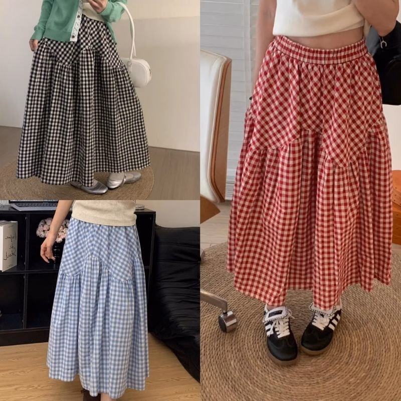 🔥 Váy midi kẻ caro xanh dopamine phong cách Hàn Quốc Nhật Bản cho phụ nữ nhỏ nhắn, váy dài vừa vặn eo cao mới bán buôn [Giao hàng miễn phí] đang giảm giá!